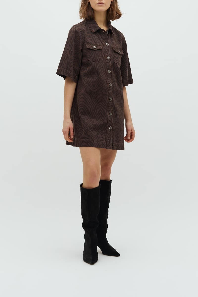 Sej denim kjole fra Global Funk! Kjolen har det flotteste zebraprint, knaplukning, korte ærmer og brystlommer. Den kan nemt bruges både til hverdag og særlige anledninger. Style dem evt. med et par fede sneaks, loafers eller en sandal.