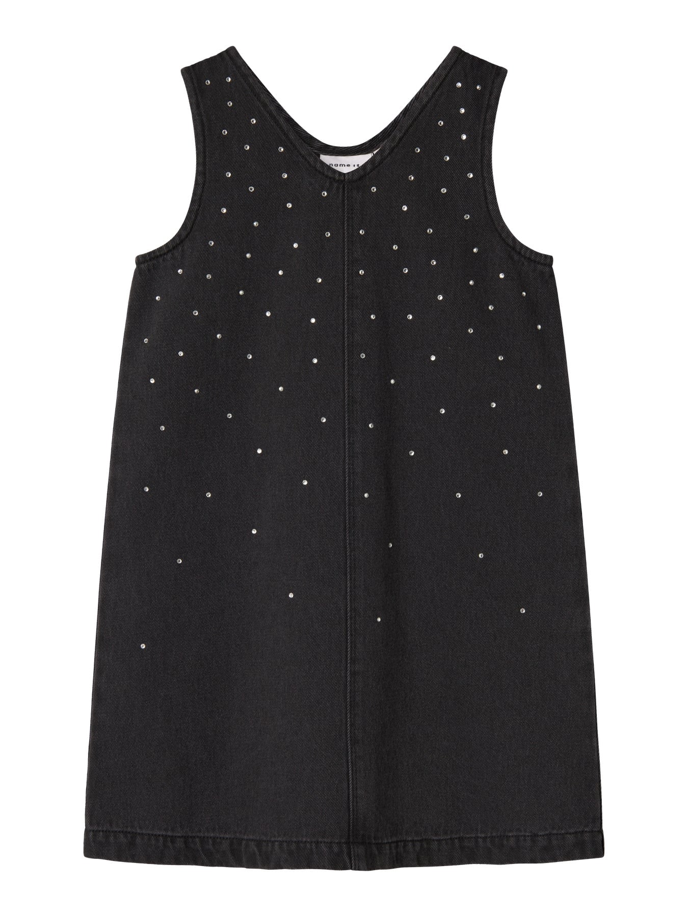 Mega smuk spencer kjole fra name it. Den er i et grå sort denim look med rhinsten på. Kjolen har et loose fit.