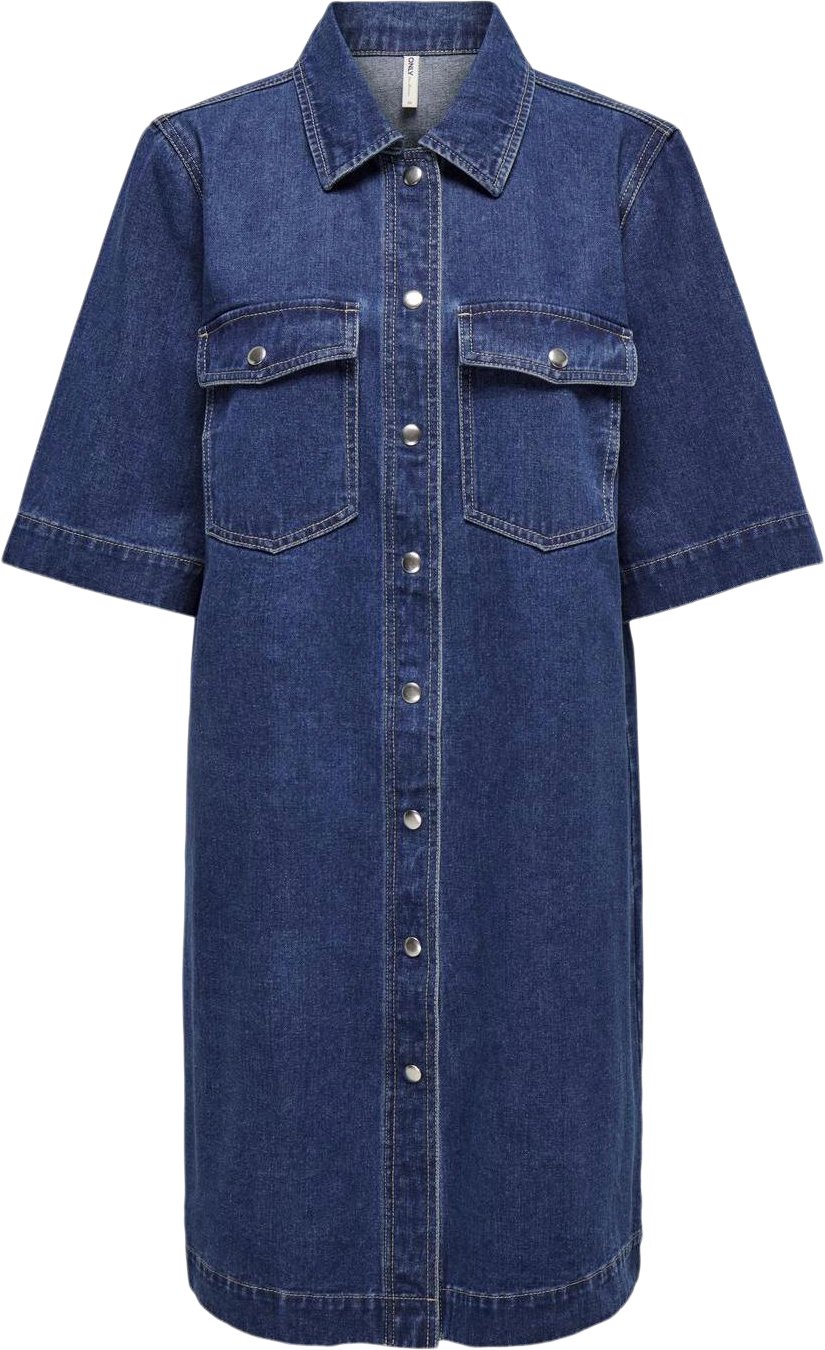 Gør dig klar til arbejde, skole eller anden aktivitet med en hverdagskjole, der er nem at style. Bomuld laves af naturlige fibre, som skaber et blødt, åndbart stof. – Produkttype : Denimkjole – Hals : Skjortekrave – Ærme : 2/4 ærmer – Lukning : Trykknaplu