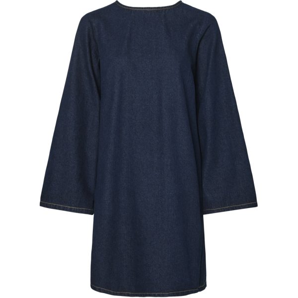 Cool denimkjole fra Pieces med bindebånd i nakken. Til hverdag kan den styles med tights og sneakers, mens den til festligere anledninger kan kombineres med stiletter og en fin taske. – Trendy- Alsidig style- Bindebånd Materiale: 100% Bomuld